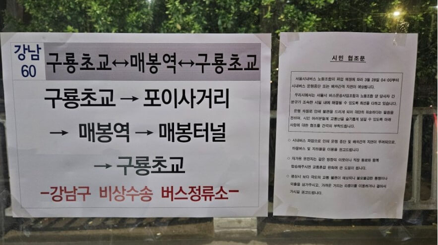 강남구 주민분들은 위 내용을 참고하셔서 시내파업으로 인한 출 ·퇴근길 불편함을 조금이라도 줄이시기 바랍니다.