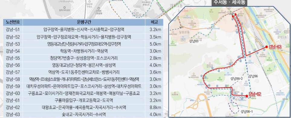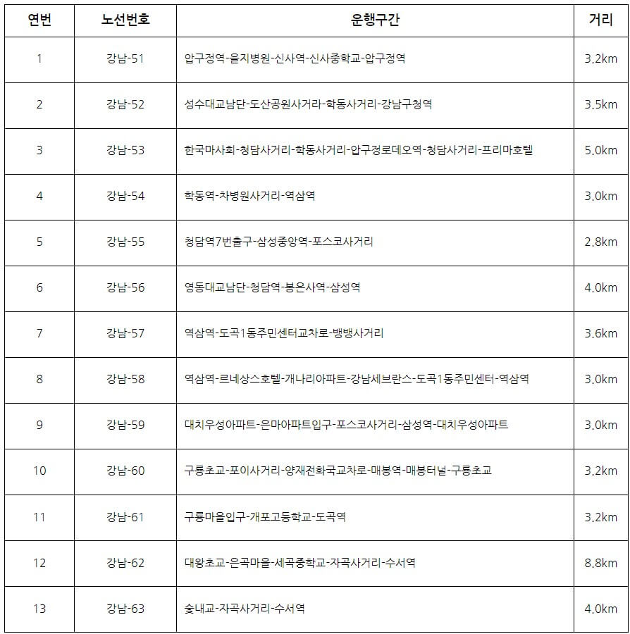 강남구 주민 비상수송버스 운행 노선표 및 노선도 파일