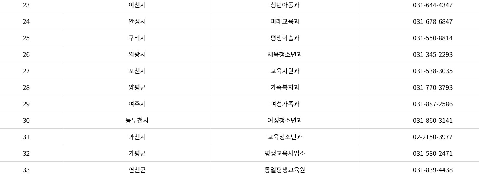 10 | 평택시 | 교육청소년과 | 031-8024-2944 |