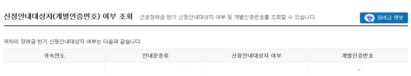 대상자가 아닌 경우 - 개별인증번호가 따로 기재되어 있지 않습니다. 공란입니다.