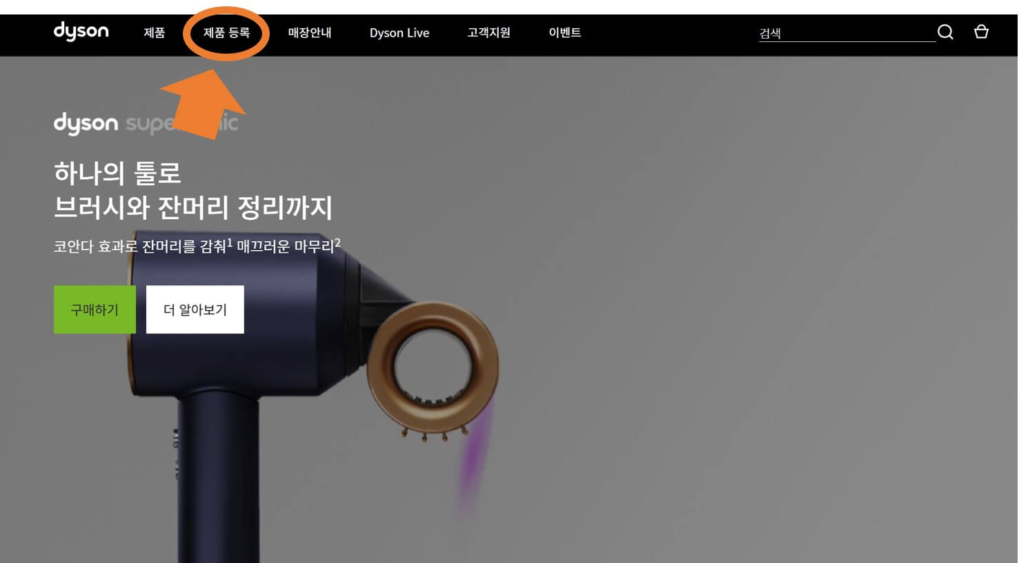 다이슨 제품을 사시면 홈페이지 바로가기를 통해 제품등록을 꼭 하시기 바랍니다.