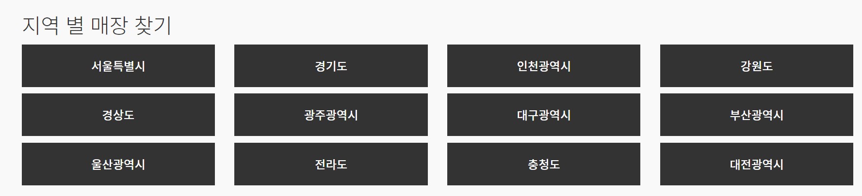 ● 광주광역시 / 대구광역시 / 부산광역시 / 전라도 / 울산광역시 / 충청도 / 대전광역시