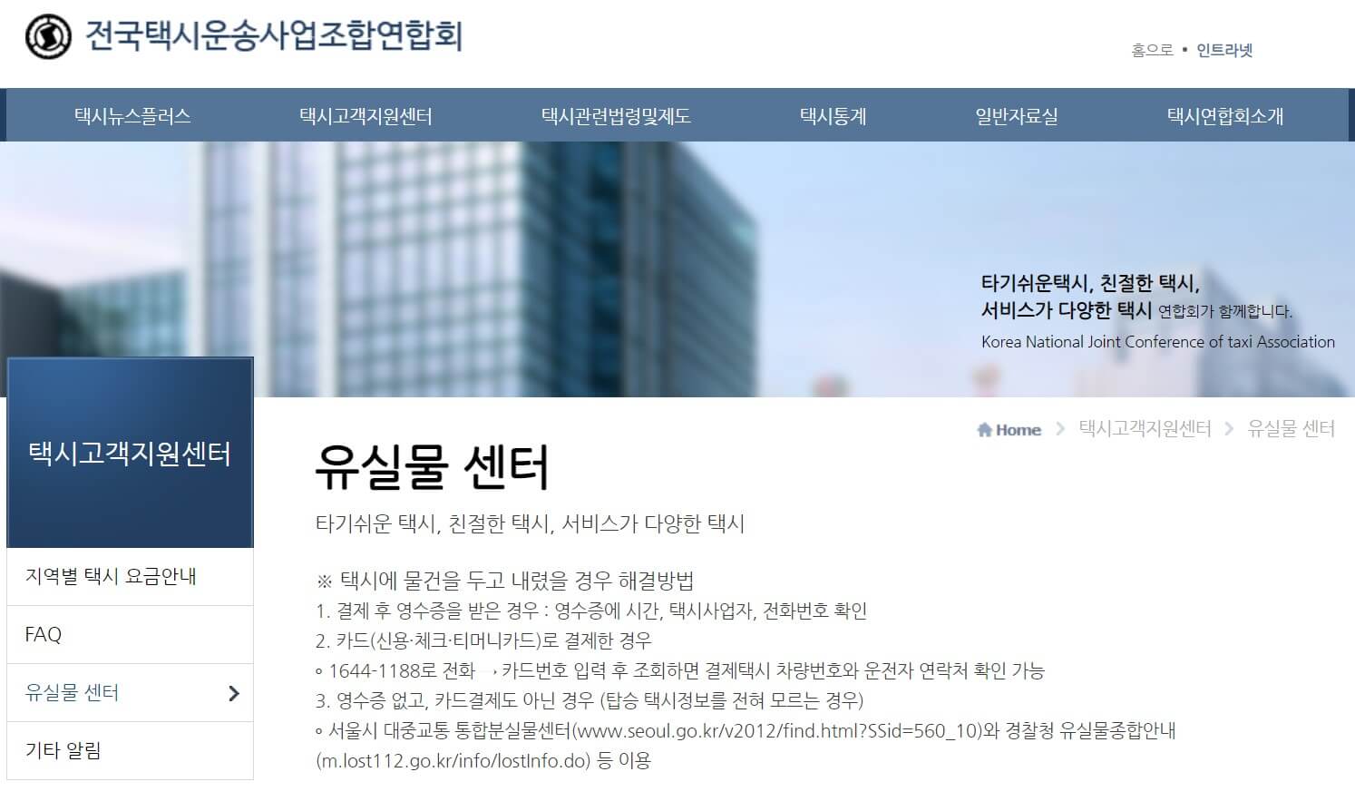 | 택시 유실물 센터 전화번호 |