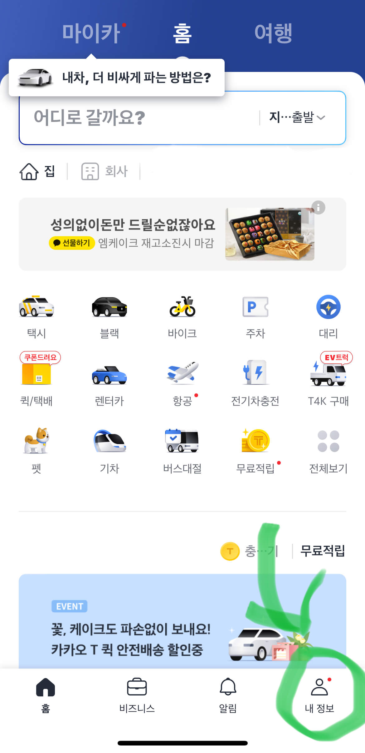 - 우측하단 내 정보 클릭
