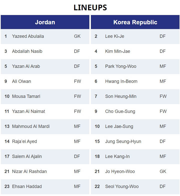 2024년 아시안컵 대한민국 vs 요르단 선발 라인업이 발표되었습니다!