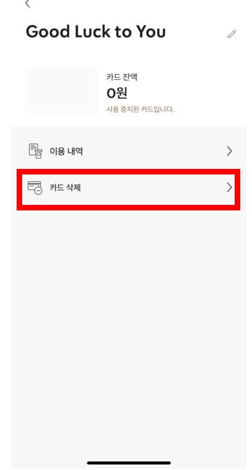 스타벅스 e카드의 잔액을 이전하고 나면 삭제방법은 아주 간단합니다.