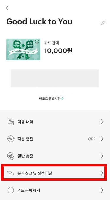 - '분실신고 및 잔액이전'을 클릭하고 신청하면 카드가 중지됩니다.