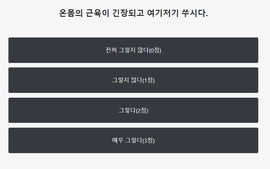 - 온몸의 근육이 긴장되고 여기저기 쑤신다