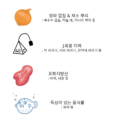 -고추장, 된장등 염분이 많은 장류와 김치 등도 일반쓰레기로 배출