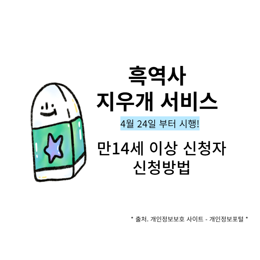 | 지우개(잊힐 권리) 서비스 - 만14세 미만 신청자 신청방법 (0) | 2023.04.28 |
