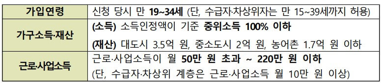 • 기준 중위소득 50% ~ 100% : 만 19세 이상 ~ 만 34세 이하