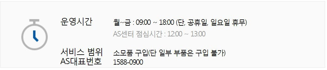 - 서비스 범위 : 소모품 구입 가능(단, 일부 부품은 구입 불가)