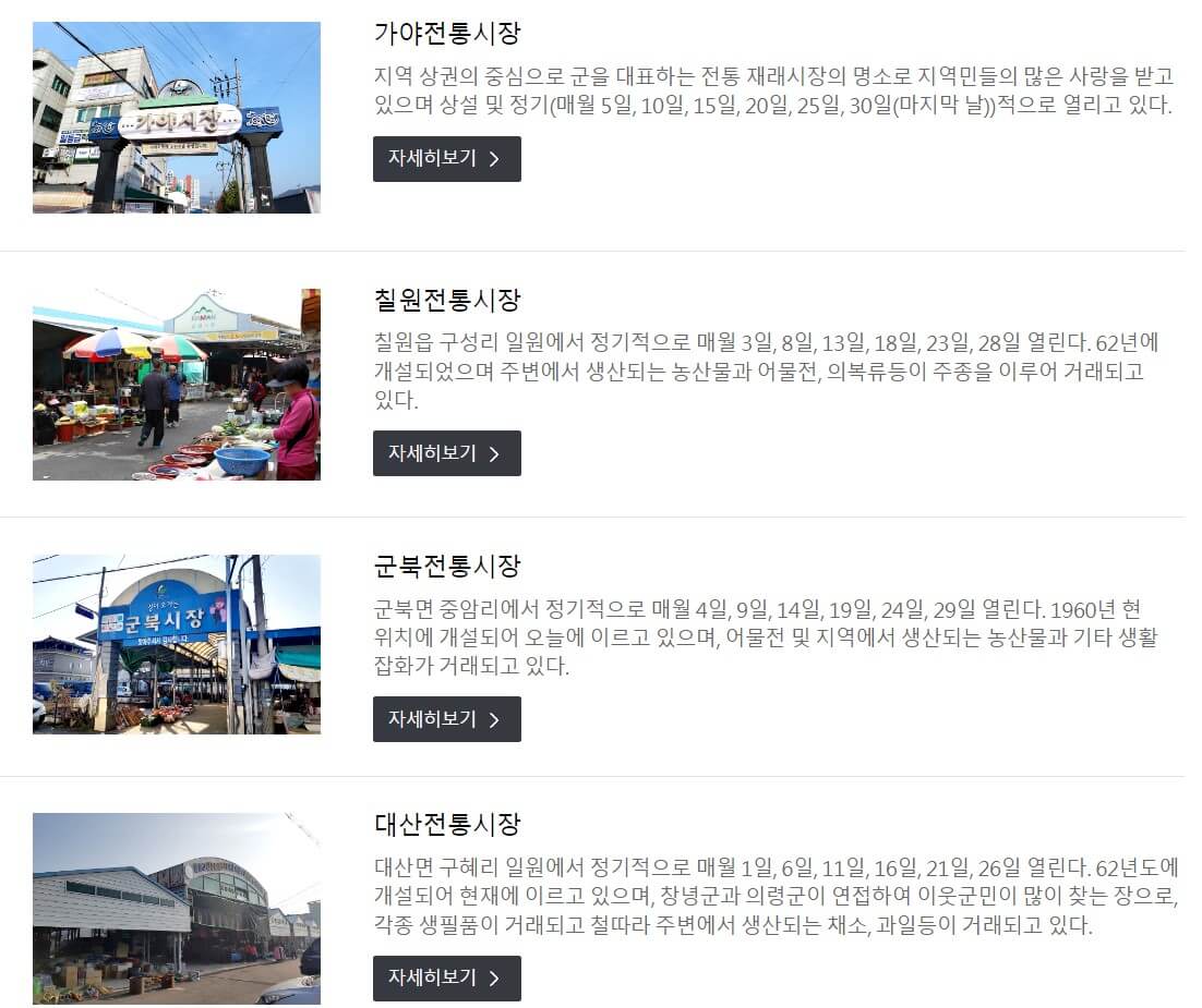 가야전통시장 / 칠원전통시장 / 군북전통시장 / 대산전통시장