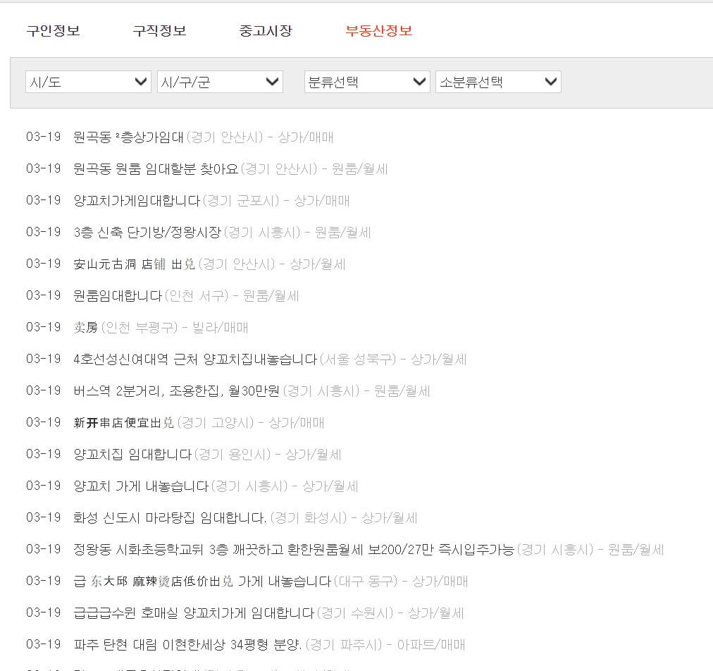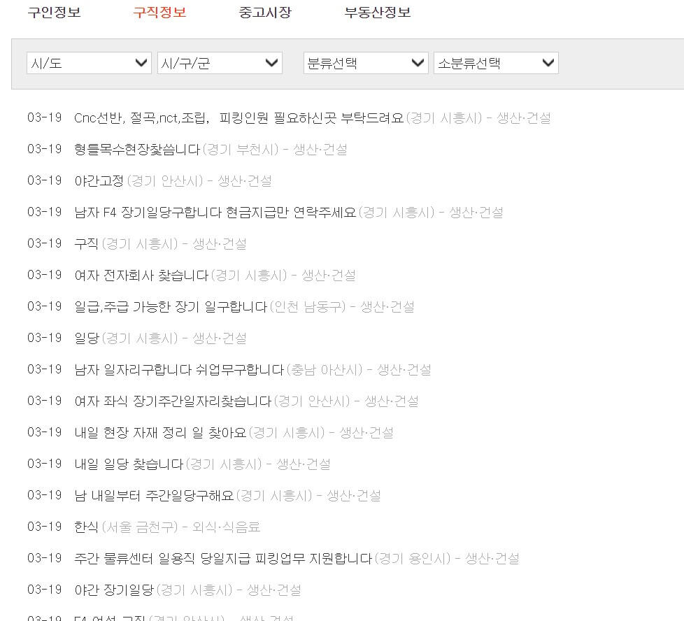✓ 지역을 선택하여 들어가면 구인정보 / 구직정보 / 중고시장 / 부동산정보 등을 찾아보실 수 있습니다.